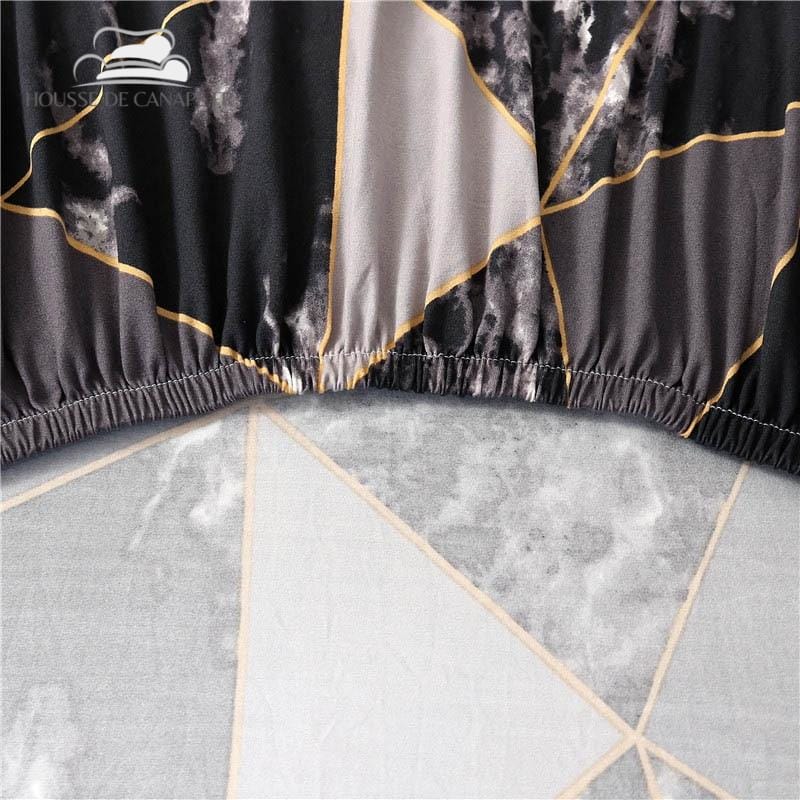 Drapez cette protection sur votre clic clac avec un imprimé design et moderne. Une imitation de marbre noir qui apporte instantanément à votre salon une touche chic et tendance. La housse clic clac motif s'accorde facilement n'importe quelle décoration, vous assurant ainsi une grande souplesse de conception dans votre pièce. Son tissu extensible et résistant assure également le maintient bien en place du revêtement pour une protection optimale.